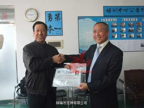 龍神總經(jīng)理彭小龍為老師頒發(fā)汽車鈑金與噴漆修復(fù)技術(shù)合格證書