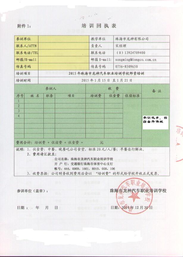 2、報(bào)名回執(zhí)表需在培訓(xùn)開始前5日,回傳至我司。