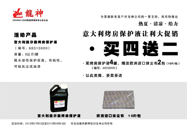 意大利烤房保護(hù)液促銷方案
